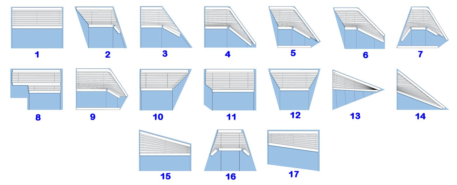 - Range of 20mm pleated fabrics in sheer, privacy and blackout types